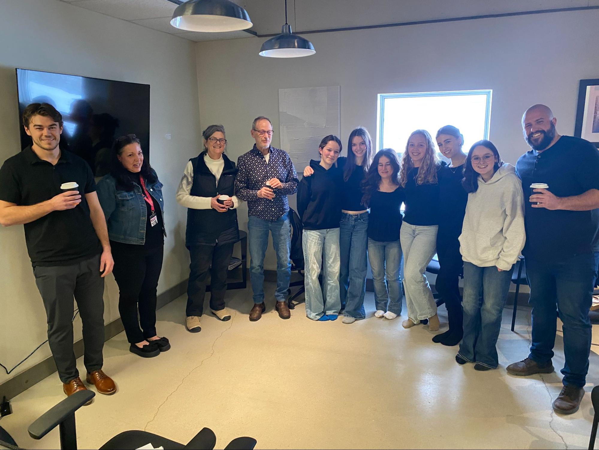 26 students from the Grade 11 Entrepreneurship: The Venture course participated as part of their culminating activity. Students worked in groups of five and presented their business and social-impact ideas to the “sharks” who were HUB members and local professionals. These individuals offered encouraging feedback and advice to the students. Pitches included anything from tech support for seniors, to user-friendly apps, to a vending machine that provides food/drinks and daily essentials to those less fortunate.